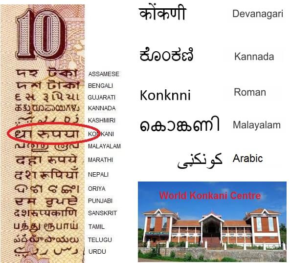 Konkani is a language. It, in fact, is one among 17 languages are present in an Indian Currency note.